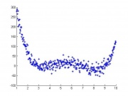 x=1:.025:10; y=(x-3).*(x-4).*(x-7).*(x-9)+15.*randn(size(x)); scatter(x,y,'*') % запишем x и y в виде столбцов x=x'; y=y';