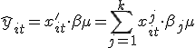\widehat{y}_{it} = x'_{it} \cdot \beta + \mu = \sum_{j=1}^k {x_{it}^j \cdot \beta_j} + \mu