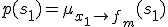 p(s_1) = \mu_{x_1\rightarrow f_m}(s_1); p(s_i|s_{i-1}) = \begin{cases}\mu_{x_i\rightarrow f_m}(0),& s_i=s_{i-1},\\ \mu_{x_i\rightarrow f_m}(1),& s_i\neq s_{i-1}.\end{cases}