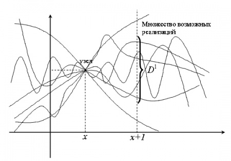 Рис.17. Возможная ожидаемая ошибка, или распределение реализаций случайной функции, удовлетворяющих данным обучения