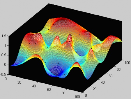 - Отсюда можно сделать вывод, что решение задачи многомерной интерполяции как поиск наиболее вероятной реализации функции (2) или (3) удовлетворяющей узлам интерполяции, сводится к задаче квадратичного программирования с ограничениями в виде равенств.