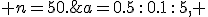 \mu=0.5, \;\; p=0\,:\,0.01\,:\,1, \;\; a=0.1\,:\,0.1\,:\,5, \;\; n=100.